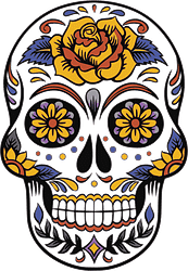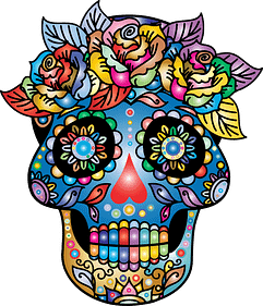 I was introduced much more to it when I took four language classes for my undergraduate degree because I chose Spanish to study. I did several of my bigger projects on this holiday and learned a lot about how this culture observes their dead with festivals and parties that include costumes, food and flowers. Family and friends make ofrendas, an altar to hold pictures, candles and favorite foods or drinks of the people they lost. Sugar skulls and pan de muertos (bread) is made. Ultimately, the focus is on celebrating the life of the person and healing, rather than only mourning their passing. You can see one of the colorful skull illustrations that I did for my one of my class projects on the left.