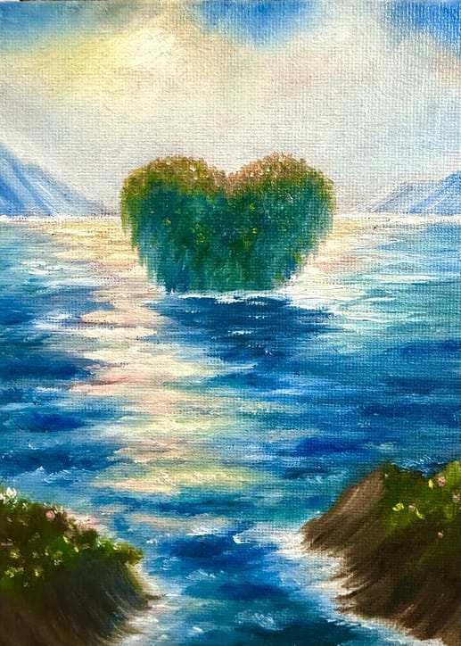 That’s the feeling that I sought to convey in my painting, Heart Island.